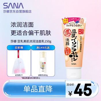 莎娜(SANA)日本豆乳美肌浓润洗面奶女高保湿补水洁面乳干皮150g